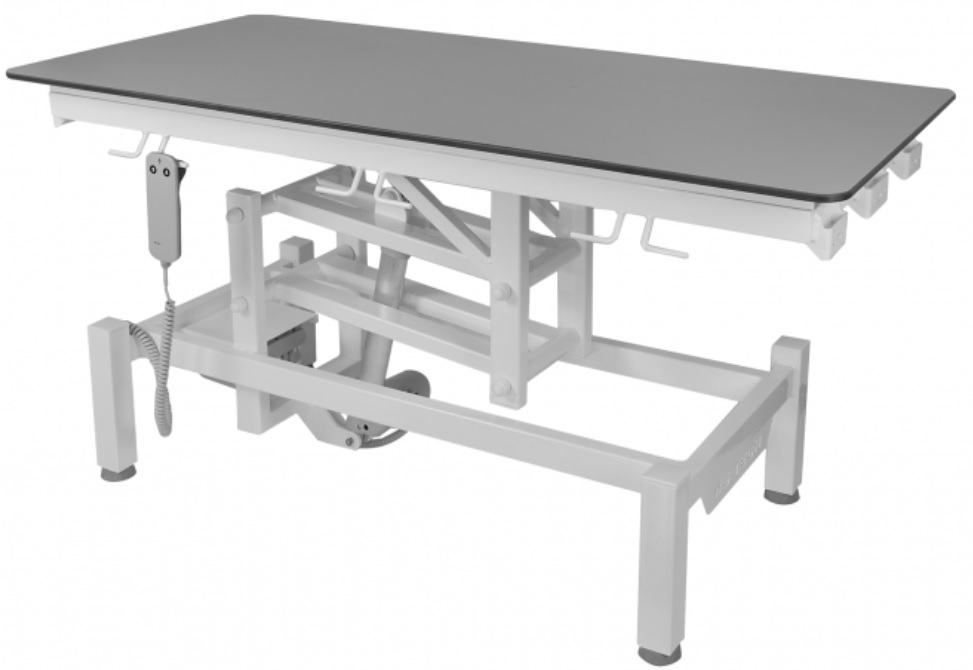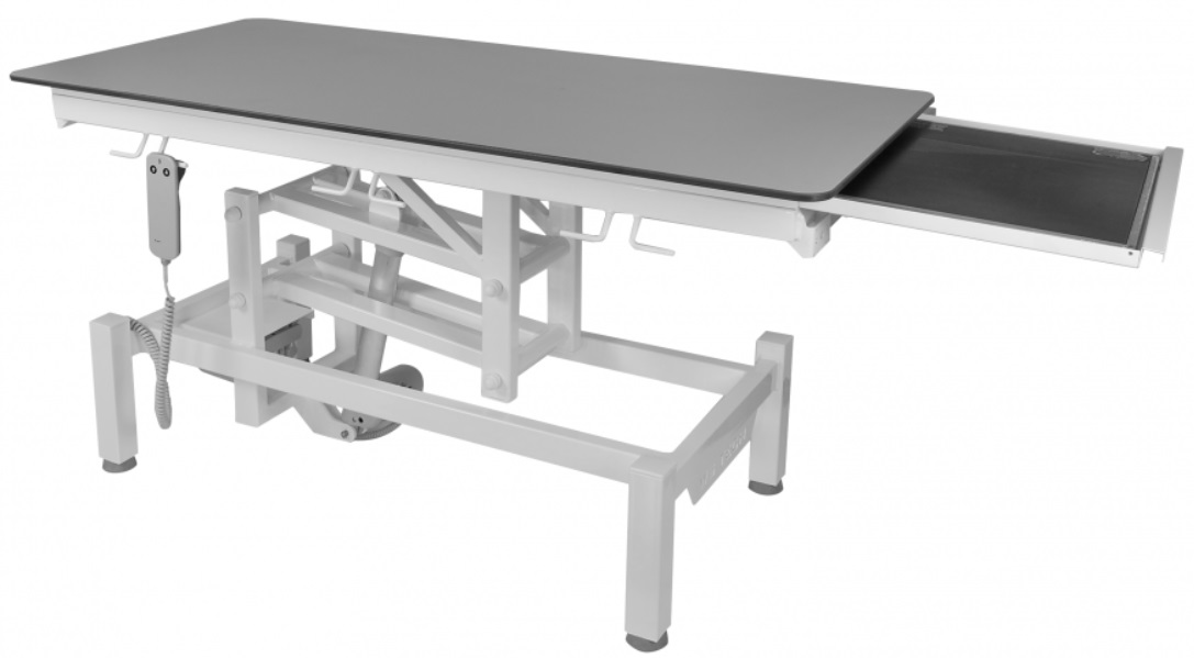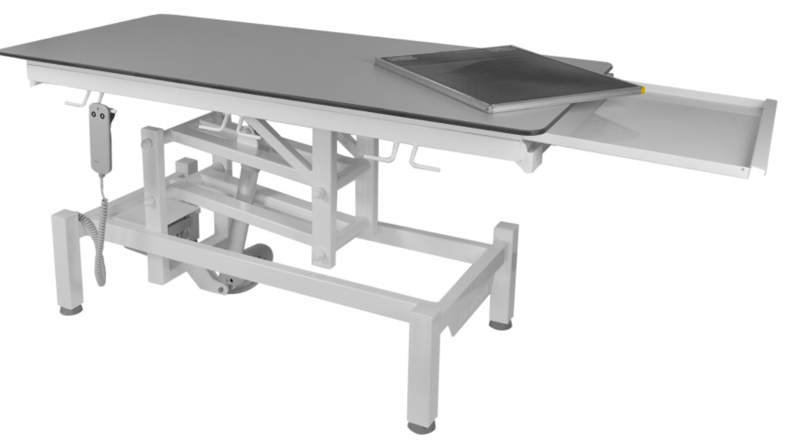 Całość konstrukcji pokryta jest odporną na uszkodzenia mechaniczne i zarysowania farbą proszkową. W standardzie stół posiada w pełni łożyskowaną elektryczną regulację wysokości za pomocą pilota ręcznego oraz blat wykonany z tworzywa HPL przeziernego dla promieni RTG. Standardowo stół posiada uchwyty umożliwiające montaż opcji dodatkowych oraz tace na kasetę RTG z możliwością ustawienia na całej długości blatu.