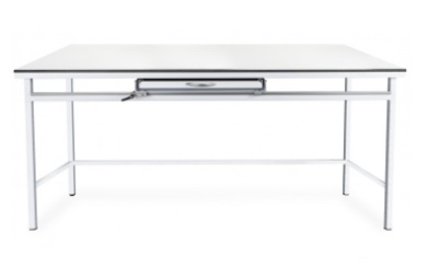 Stół o stalowej konstrukcji pokrytym farbą proszkową natomiast blat stołu wykonany z przeziernej dla promieni RTG płyty HPL. Pod stołem znajduje się szuflada, która została obłożoną matą antypoślizgową, jego wymiary to 60x65x3 cm. Szuflada umożliwia umieszczenie w niej kasety RTG.